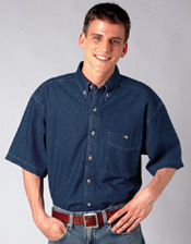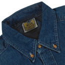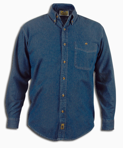 medium blue 6.5 oz 100% cotton, denim shirt. Button down collar with